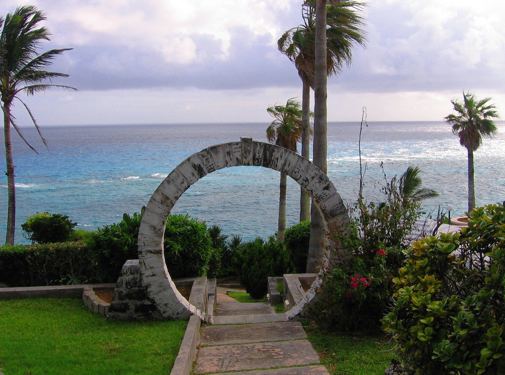 One of Bermuda’s many MoongatesThat’s right, moongates. No, they aren’t stargates that transport you through space. They are circular stone arches or gates, originally brought to Bermuda from China in the late 19th century by a returning sea-captain. The moongate is an oriental symbol of peace and happiness and is a familiar in many of Bermuda’s gardens. Legend has it that honeymooners who walk through the gate will have eternal happiness and good luck.